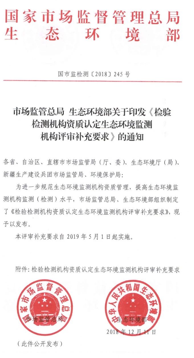 第一條 本補充要求是在檢驗檢測機構資質認定評審通用要求的基礎上,針對生態環境監測機構特殊性而制定,在生態環境監測機構資質認定評審時應與評審通用要求一并執行。