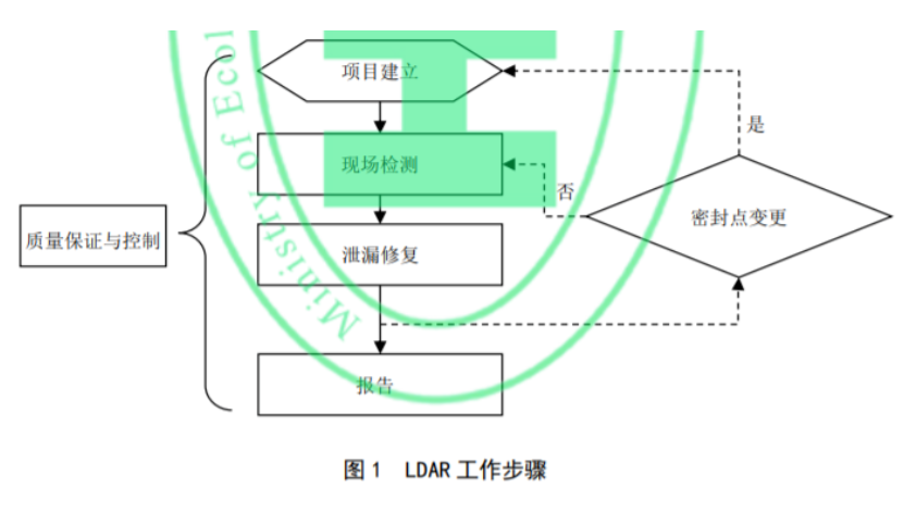 《指南》提到,首次開展LDAR工作包括但不限于項目建立、現場檢測和泄漏修復3個步驟。非首次開展LDAR工作包括但不限于現場檢測和泄漏修復2個步驟。企業應基于上述工作結果至少編制首輪報告和年度報告,各個步驟應符合相應的質量保證與控制要求。若企業因開停工、檢維修以及改擴建等原因發生密封點變更的,應重新對變更部分進行建檔信息修訂,并開展現場檢測和泄漏修復工作。LDAR工作步驟見圖 1。項目建立、現場檢測和泄漏修復具體工作流程見附錄 A。人員現場作業應符合企業相關作業制度或規定,穿戴符合GB/T 11651及相關要求的個體防護裝備,涉及特殊作業的應按照 GB 30871 及企業制度要求,執行特殊作業管理程序。泄漏維修前應對人員、設備及工作過程等進行安全條件評估,符合安全條件時方可開展工作。