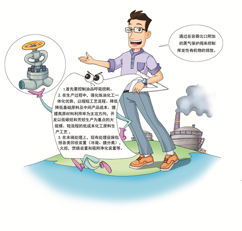 首先要控制油品呼吸損耗。呼吸損耗是溫度變化使容器產(chǎn)生“吸進和呼出”而導(dǎo)致的揮發(fā)性有機物損耗,可通過在容器出口附加的蒸氣保護閥來控制揮發(fā)性有機物的排放。