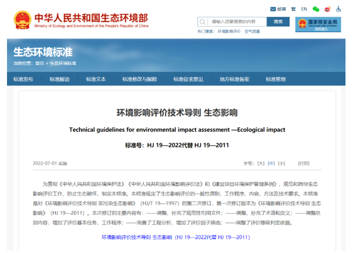 生態環境部印發《環境影響評價技術導則 生態影響》(HJ 19-2022)